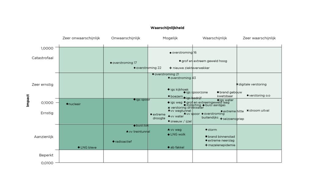 Aan de hand hiervan zijn de incidenttypen weergegeven in het risicodiagram hieronder.